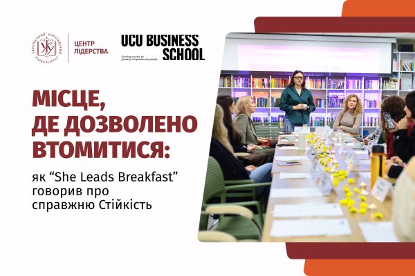 18 жовтня у м. Києві відбувся “She Leads Breakfast” – подія, яку цього разу Центр Лідерства УКУ та Бізнес-школа УКУ організували у партнерстві з Центром психічного здоров’я та реабілітації ветеранів «Лісова поляна». Це вже третя зустріч із серії Сніданків для жінок-лідерок, що об’єднала представниць зі сфери освіти, державного управління, бізнесу, громадського сектору та Сил Оборони. […]